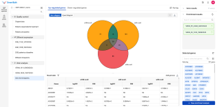 異なるサンプル群間で遺伝子発現レベルを比較し、有意に上昇または低下した遺伝子を特定することができます。DEG の結果からヒートマップやベン図、Gene